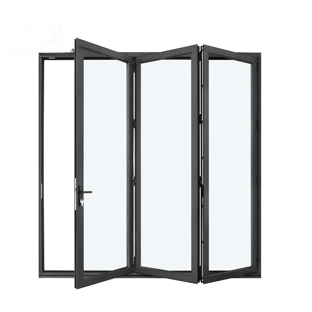 Thermal break double Low E glass black aluminum bi folding door with grill design